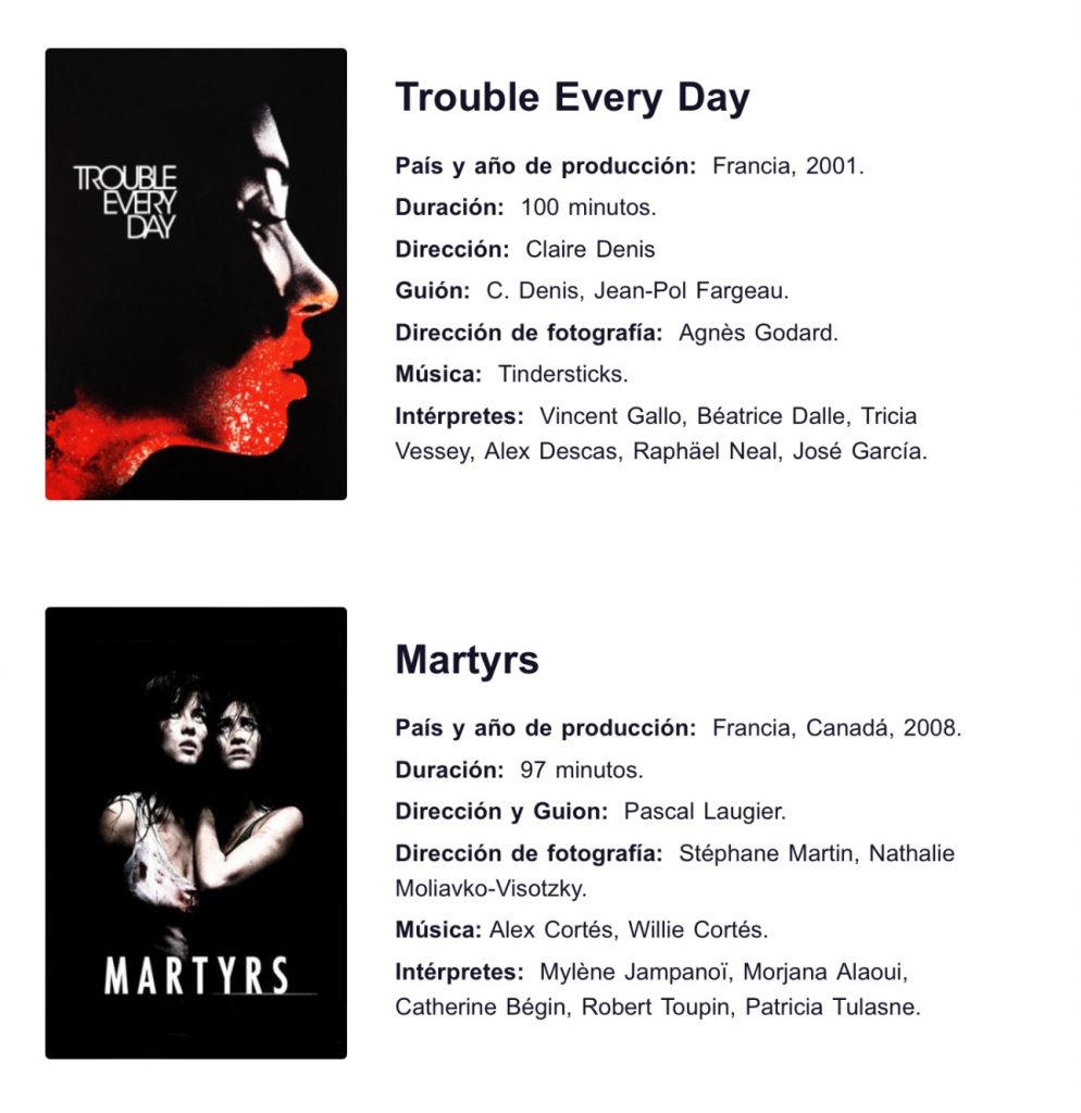 «Trouble Every Day» (16 de febrero) y «Martyrs» (15 de marzo) llegan al catálogo de Filmin de la mano de Vértigo Films.