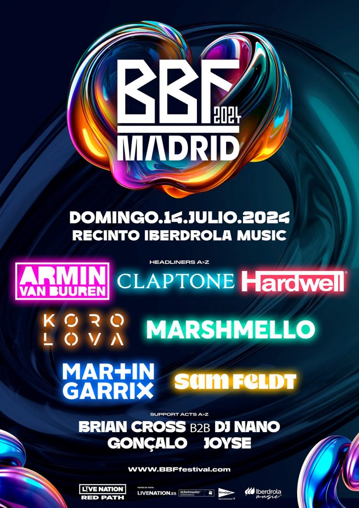 BBF, inaugurado en 2014 en Barcelona y que, a lo largo de siete ediciones se ha consolidado como el festival de música EDM más importante de España, anuncia su llegada a Madrid el 14 de julio de 2024 donde celebrará el décimo aniversario de su nacimiento. La capital se suma así a la ya anunciada fecha del festival BBF en Santiago de Compostela el 13 de julio dentro de la programación del Gozo Festival.